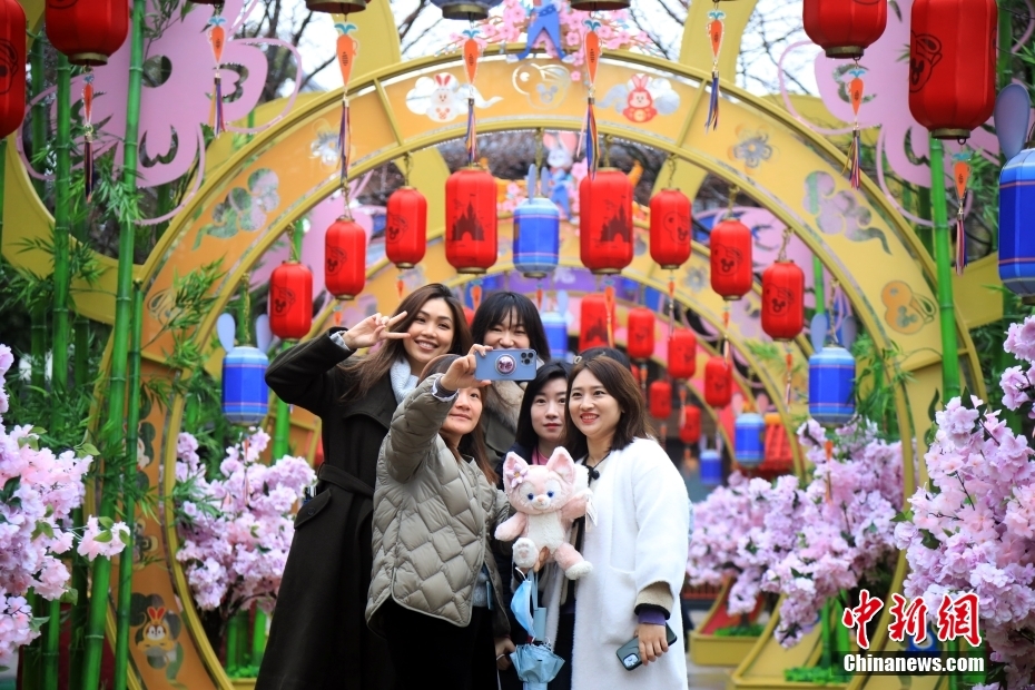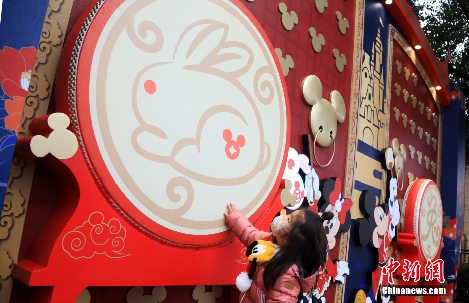 1月22日,农历正月初一,上海迪士尼度假区以中国传统瑞狮点睛仪式开启欢乐兔年。米奇、米妮携朱迪和尼克一起参加点睛仪式,传递欢乐与好运,与游客共庆奇妙团圆。春节期间,上海迪士尼度假区为前来欢聚团圆的游客准备了一系列精彩纷呈的特别体验,吸引了众多游客前来体验独具迪士尼特色的奇妙新春。图为游客在充满年味的上海迪士尼乐园拍照留念。 汤彦俊 摄