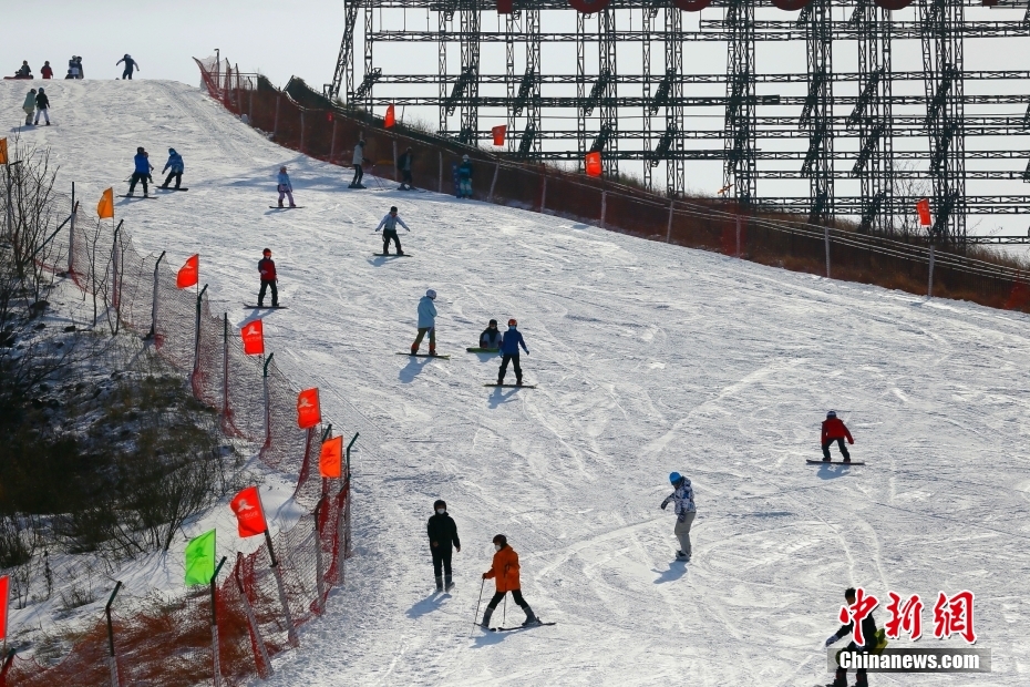 1月22日,青岛,游客在即墨区金山滑雪场滑雪。春节假期,青岛市即墨区金山滑雪场迎来众多游客,大家在体验冰雪运动中,度过一个欢乐祥和的假期。 图片来源:视觉中国