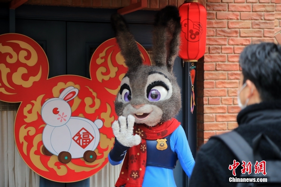1月22日,农历正月初一,上海迪士尼度假区以中国传统瑞狮点睛仪式开启欢乐兔年。米奇、米妮携朱迪和尼克一起参加点睛仪式,传递欢乐与好运,与游客共庆奇妙团圆。春节期间,上海迪士尼度假区为前来欢聚团圆的游客准备了一系列精彩纷呈的特别体验,吸引了众多游客前来体验独具迪士尼特色的奇妙新春。图为“朱迪”成为兔年主角受到游客青睐。 汤彦俊 摄