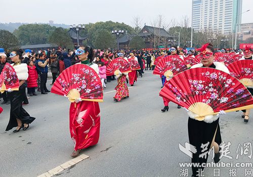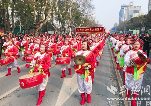 荆门市2019年元宵文艺踩街启动仪式。记者 安从斌 摄