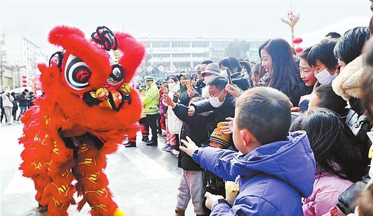 天水伏羲广场、西关古城、龙城广场、高铁站前广场、麦积山景区广场、二马路……一时都成了民俗表演的分会场。囊括了民间各种歌舞形式的社火纷纷亮相,舞龙、舞狮、高抬、腰鼓、跑驴、大脑壳等,锣鼓开道,浩浩荡荡;旱船、夹板、高跷、低跷,马秧歌、高摇伞、火龙等,载歌载舞,热火朝天,惹得游客纷纷拍摄留影。