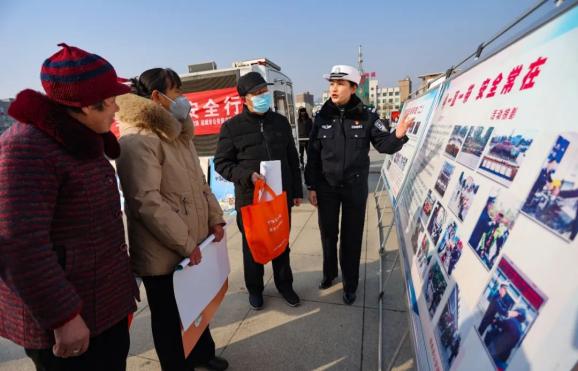 在垣曲县中心广场,民警通过发放宣传单、宣传挂图、宣传读本、展出警示版面等方式,提醒广大人民群众自觉遵守交通安全法律法规知识,摒弃不文明交通违法行为,确保自身出行安全。