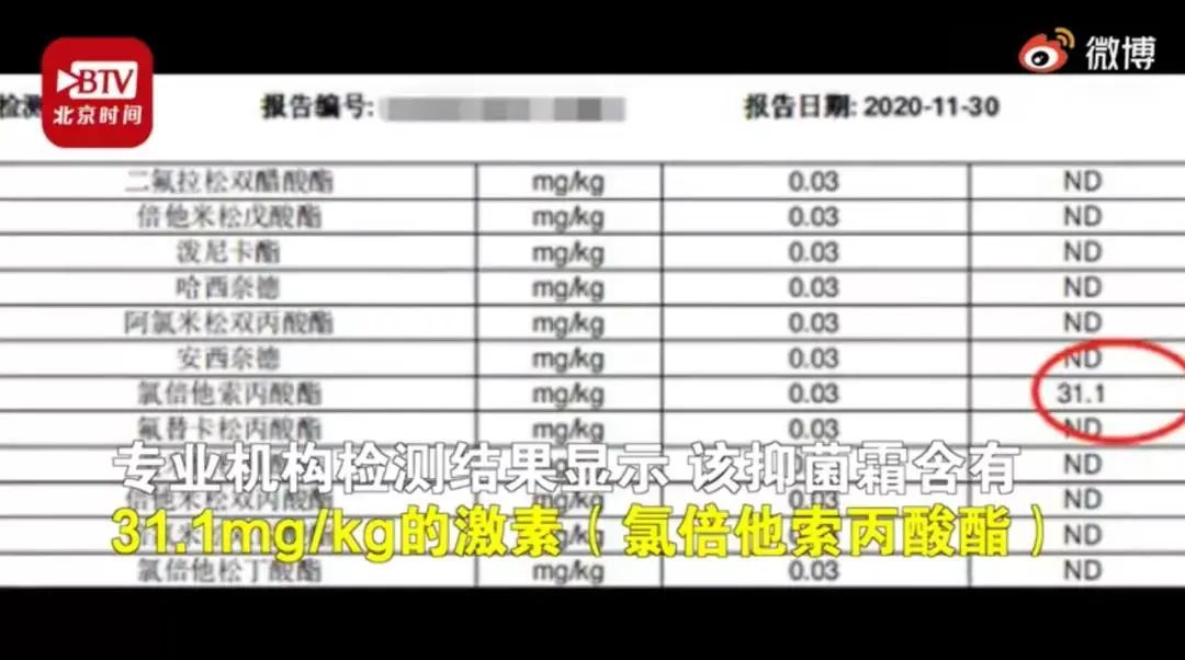 △专业机构检测结果显示该抑菌霜含有激素成分