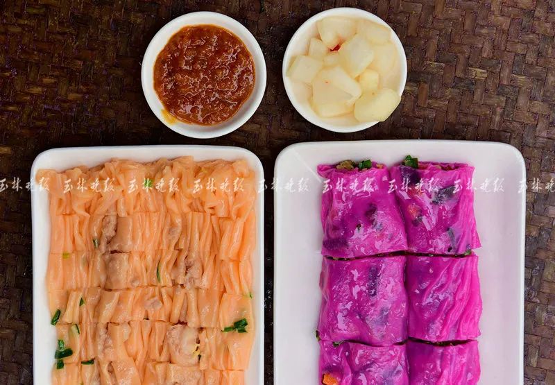 “果蔬蒸粉的特点是新鲜、纯天然,且营养丰富。”出炉时薄而透亮,滑而有劲道。黄健传表示,这种果蔬蒸粉的保质期要比普通的蒸粉长,可以保持48小时内不变质。