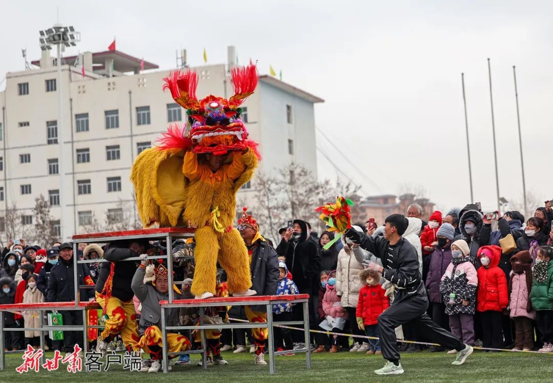 当日是农历正月十三,2024年榆中县迎新春社火调演在榆中县城举行。来自榆中县多个乡镇的15支农村社火队在县城进行舞龙耍狮、跑旱船、踩高跷、扭秧歌等民俗表演,吸引了众多市民前来观看,喜迎元宵佳节的到来。(新甘肃·甘肃日报记者 冯乐凯)