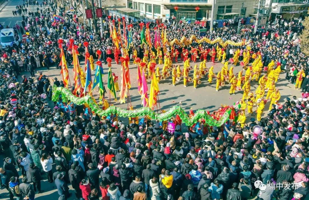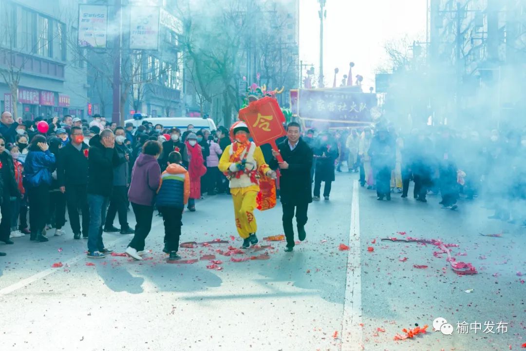 鞭炮声响、锣鼓喧天,打起腰鼓、扭起秧歌、舞起龙狮……热热闹闹红红火火的社火表演,把喜气洋洋、其乐融融的春节气氛再一次推向了高潮。真可谓:“元宵锣鼓震九天,城区社火闹新年。龙狮霍霍威风耍,欢声笑语喜气传。”