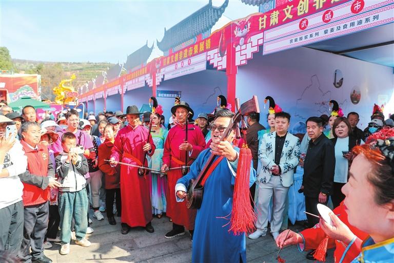 随着“天水麻辣烫”的火爆出圈,为充分展示甘肃优秀非遗,推动非遗持续为旅游提供丰富的文化资源,促进非遗与旅游深度融合,让非遗保护成果惠及大众、融入生活,由省文旅厅、天水市政府主办,省文化艺术研究院、省非物质文化遗产保护中心、天水市文旅局,秦州区政府共同承办的“如意甘肃·多彩非遗”——2024年“我们的中国梦——文化进万家”全省非遗展演活动,于3月31日—4月1日在天水市举行。同时,省文旅厅还在天水举办甘肃文创非遗市集展销活动。我省各地的非遗传承人纷纷来到天水,拿出了自己的“看家本领”,为市民和游客带来了甘肃精彩的非遗展演和精美的非遗文创展销——