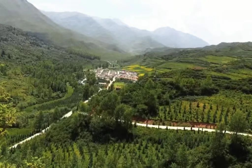 驾车进入雄县岗山生态旅游景区,地域广阔、气候湿润、植被茂盛、山体玲珑别致,林相整齐,环境极为清幽秀丽,远远眺望,堪达寺金顶在群山环绕中若隐若现,静谧中透露着神秘,仿佛“世外桃园”。