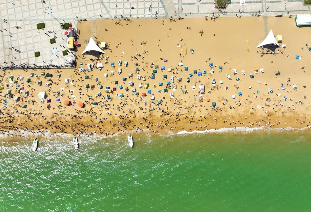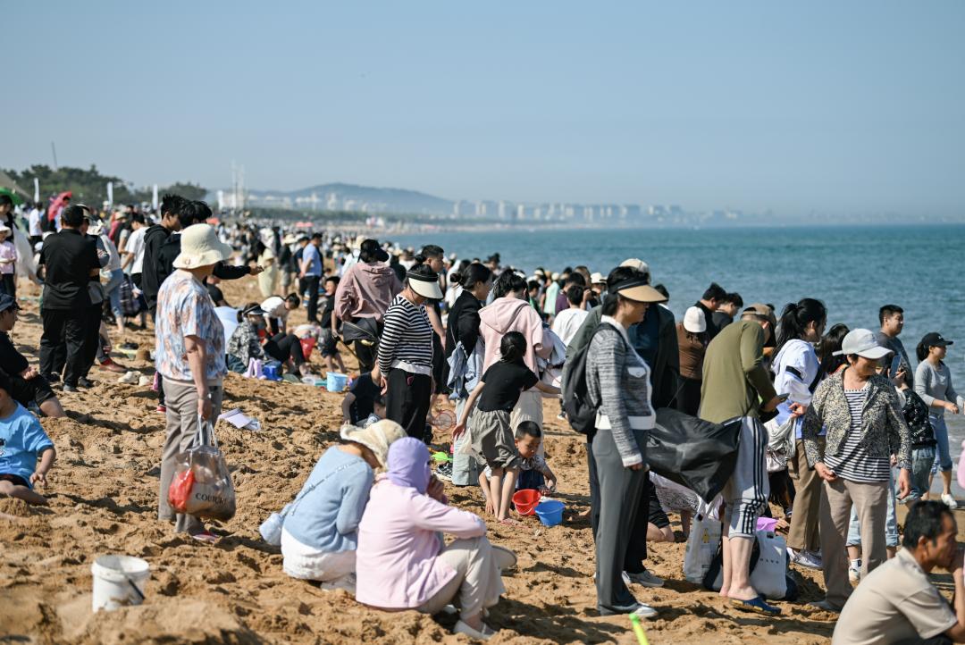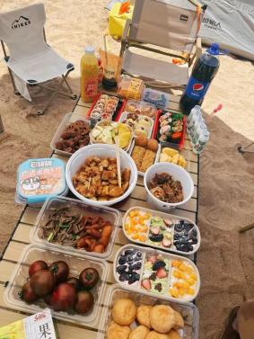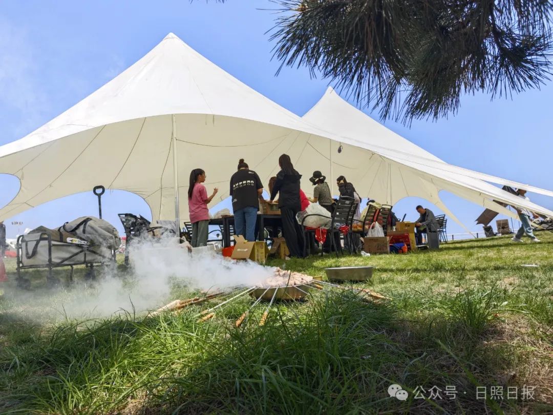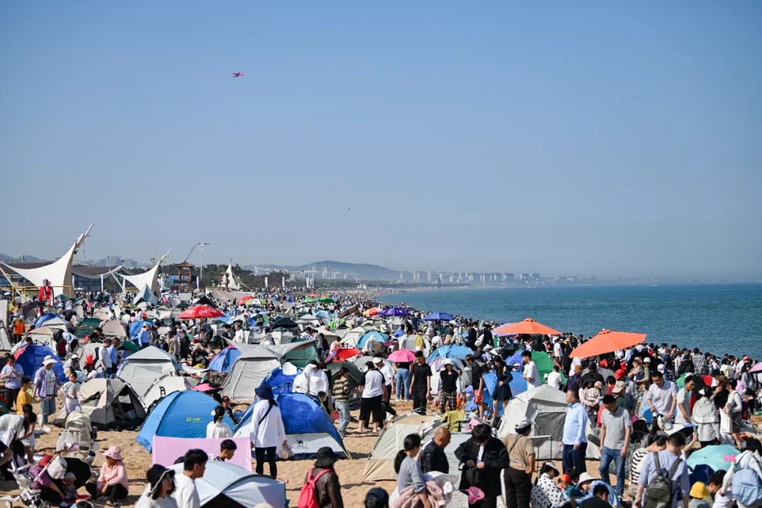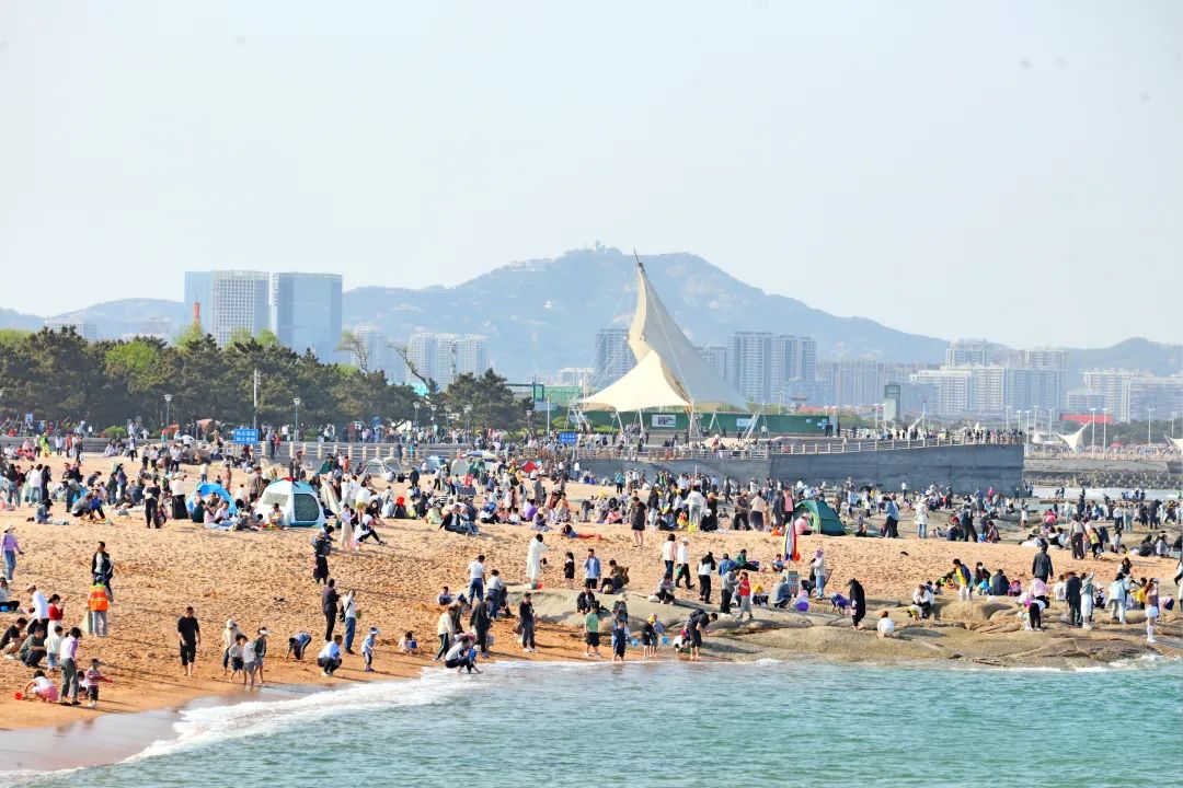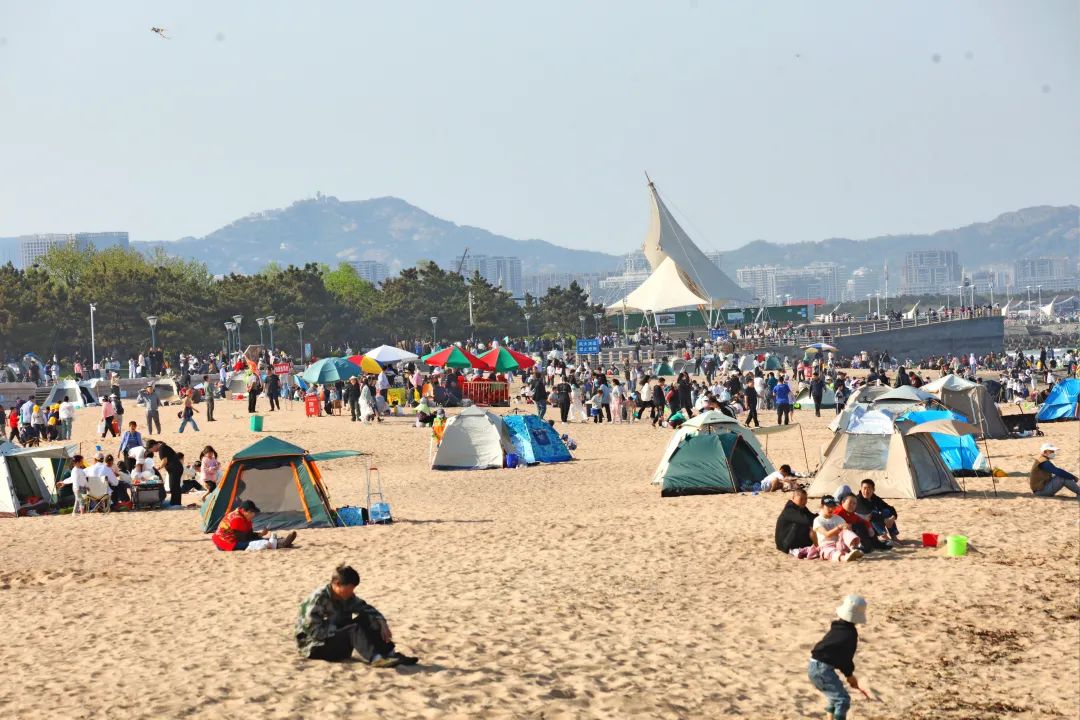 放眼整个沙滩,在蓝天下,在阳光里,构成光亮迷人的一道美丽风景的五彩太阳伞、帐篷在沙滩上星罗棋布,让海滩度假风妥妥拉满。这样轻松惬意的旅行新体验,让喜欢露营的孙女士格外欣喜,这个“五一”假期,她和朋友们带着孩子来到沙滩露营,水果、甜点、辣卤……一应俱全,“就是冲着日照这片干净的沙滩来的,孩子玩沙子,我们大人吹吹海风,聊聊天,身心放松,自有又惬意,在这里享受这别具情趣的沙滩浴,幸福感简直爆棚。”