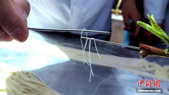 图为化隆拉面细可穿针。李隽 摄