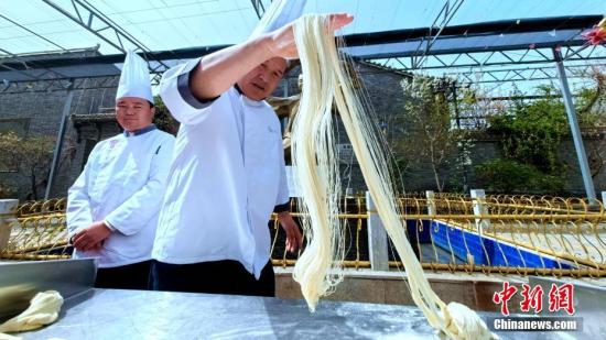 图为化隆拉面匠人展示拉面技艺。李隽 摄
