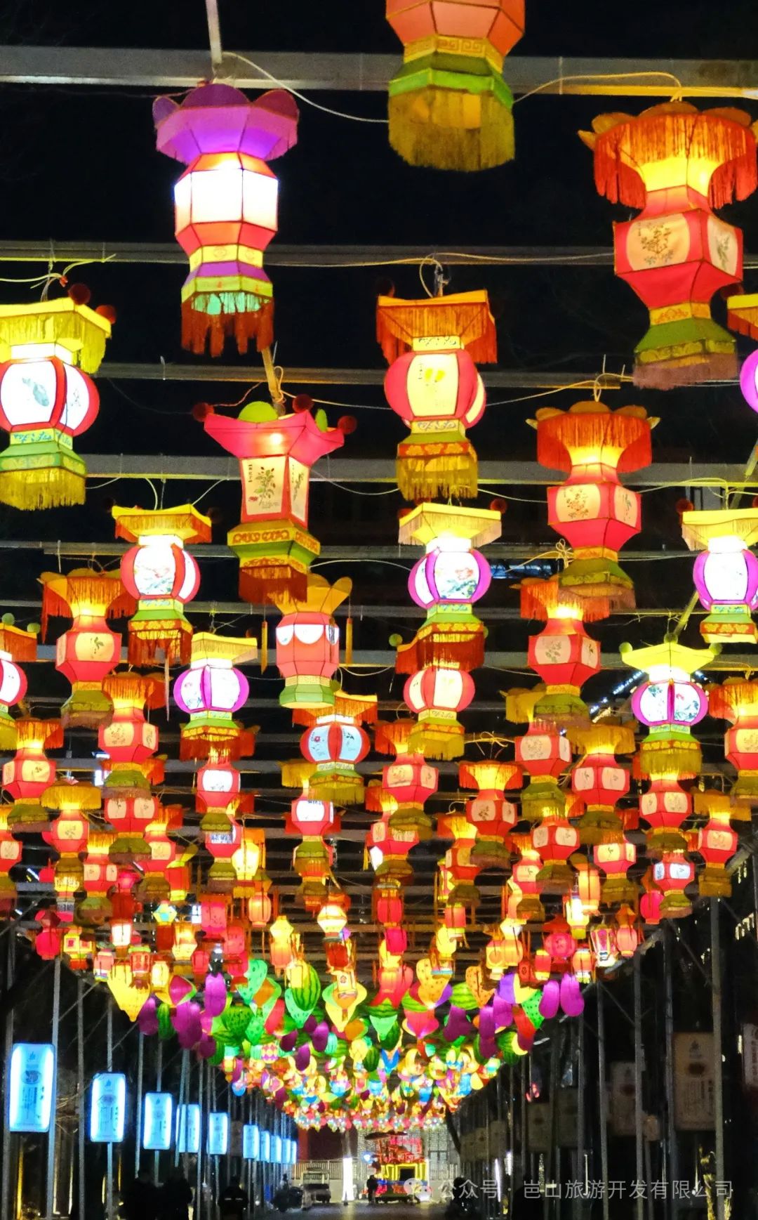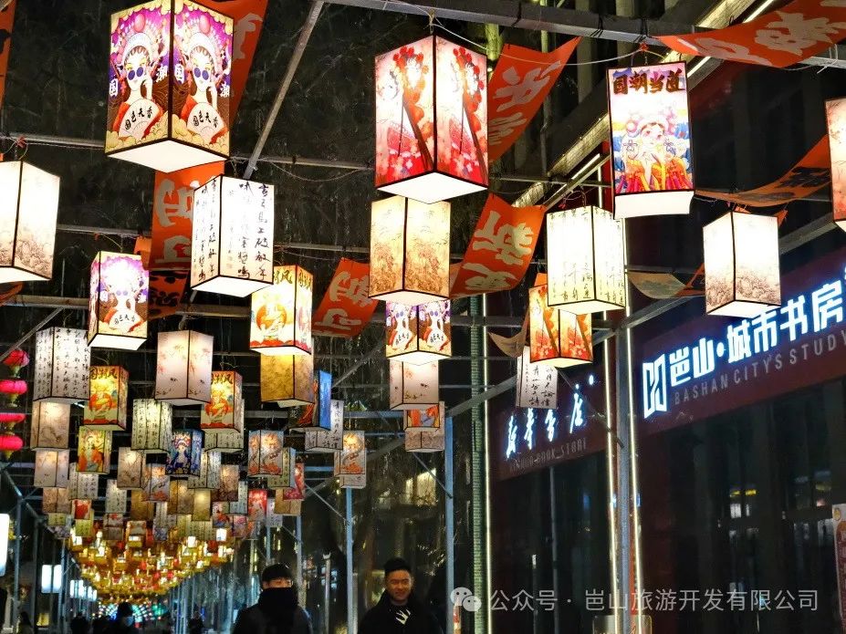 华灯初上,造型各异,融入了中医药文化、国潮元素等新春主题的岜山中医药健康旅游景区年味儿十足,灯的海洋更显璀璨韵味。