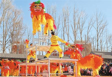 民乐县高台舞狮展雄风。新甘肃·甘肃日报通讯员 王将