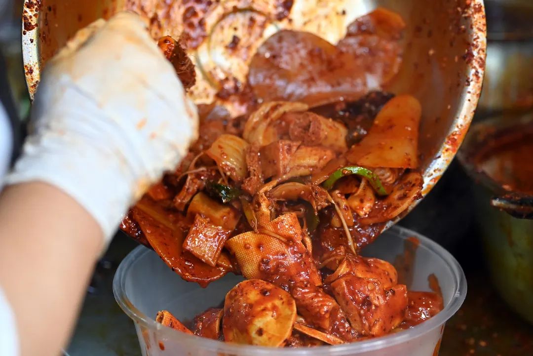 2024年3月14日,甘肃天水,商家正在制作麻辣烫。中新社记者 九美旦增/视觉中国 图
