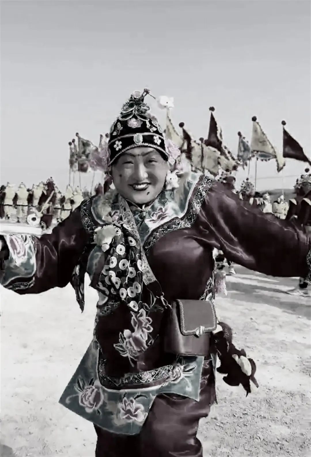 “杨老二”在社火表演中的角色扮演(视频截图)