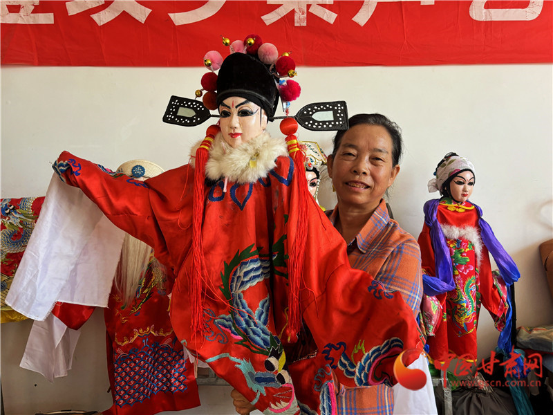 苦水镇寺滩村木偶戏非遗传承人李慧表示,杖头木偶戏用三根木棒操纵,其中一根支撑木偶头部,称为主棒或面棒,耳、眼、鼻、嘴均能闭合张开,眼珠转动,头颈上下左右扭转,另两根木棒操纵木偶人的双手,活灵活现,非常有趣。