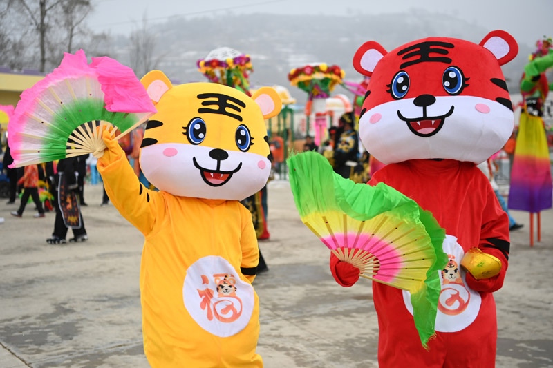 虎年春节将至,甘肃省临夏回族自治州和政县陈家集镇陈家集村村民们扭起秧歌,迎接春节的到来。