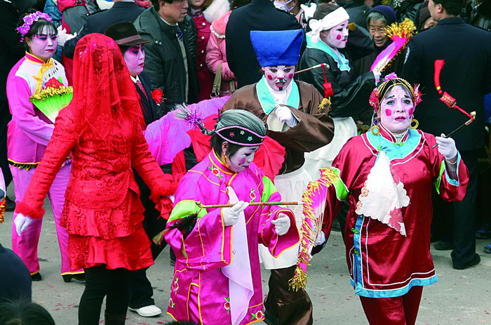 随着时代的进步,高芯子越扎材料越高级,越扎造型越奇巧,原来由大人托着小孩的徒步被拖拉机、汽车代替了,而车社火,现代人则给它起了个新名词--彩车,更是异彩纷呈、各展风流。由于农村机械的普及,农民养的骡子和马越来越少,少了骡子和马,马社火自然就不像从前那么火爆了。