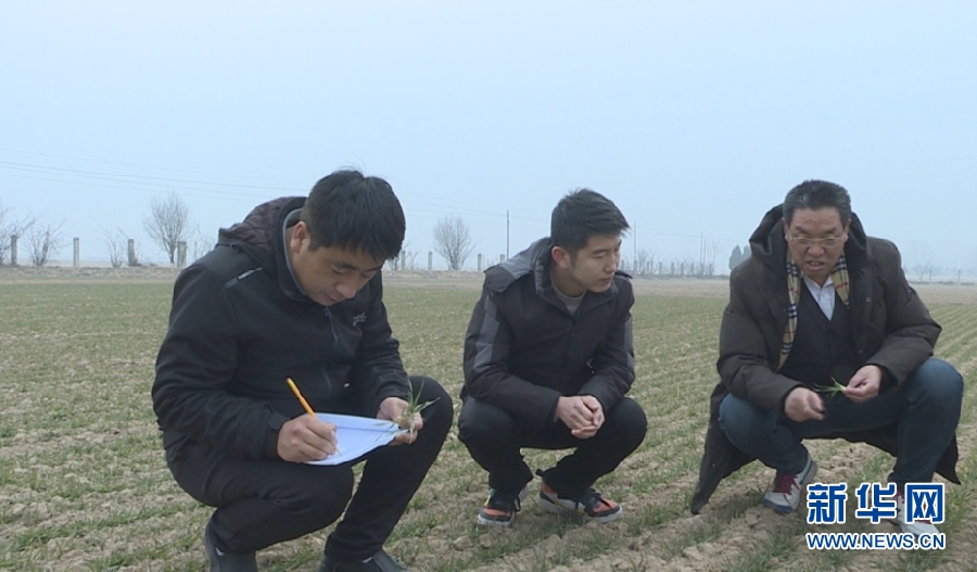 隆冬时节,研究人员正在查看平凉大田冬小麦长势。