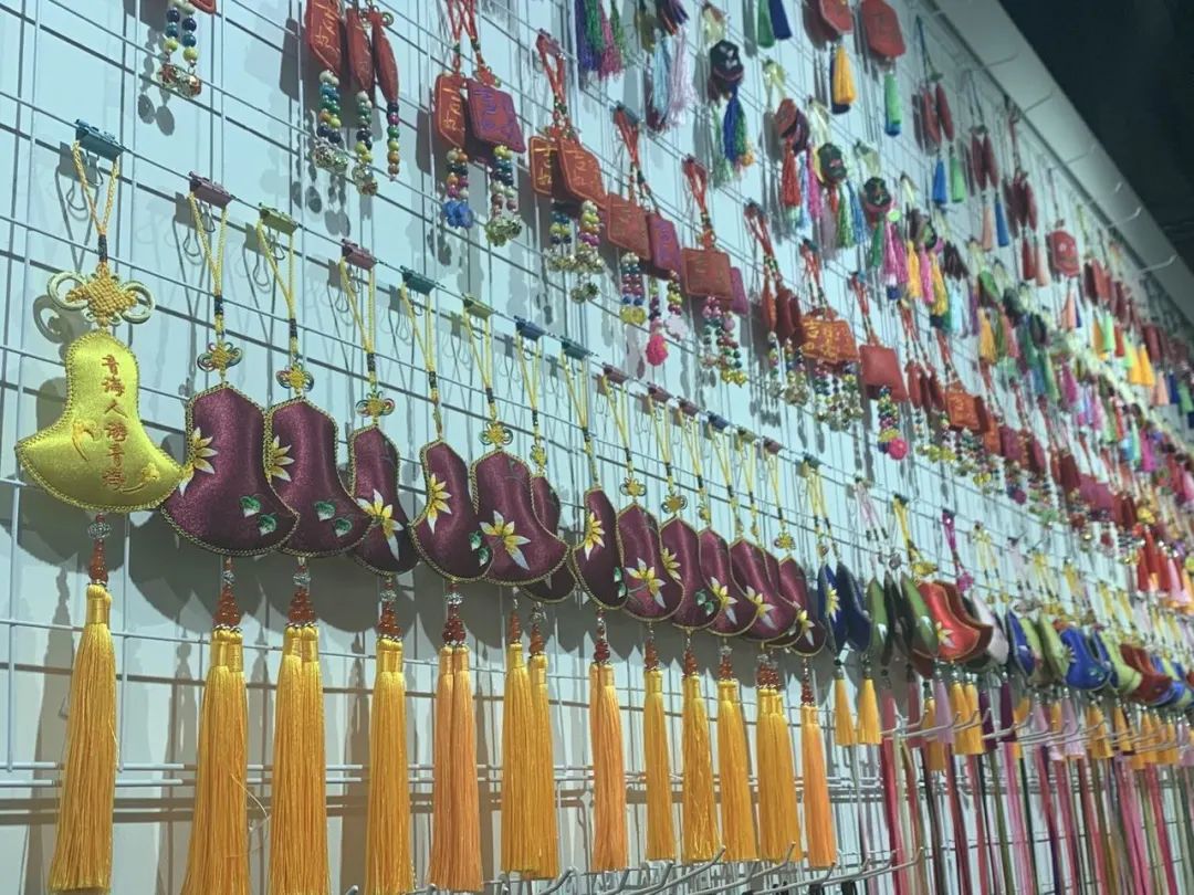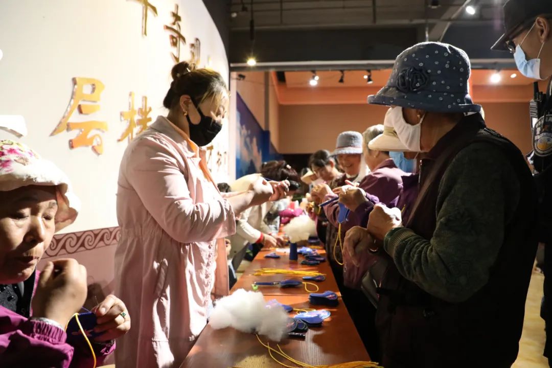 走进湟中县河湟文化博物馆一楼展厅,门口热闹的青绣互动体验现场吸引参观者驻足。几名青绣传承人及民间艺人现场秀技,展示湟中堆绣制作技艺和青绣荷包技艺和针法。十几名参观者也加入其中,拿着针线向艺人们求教。