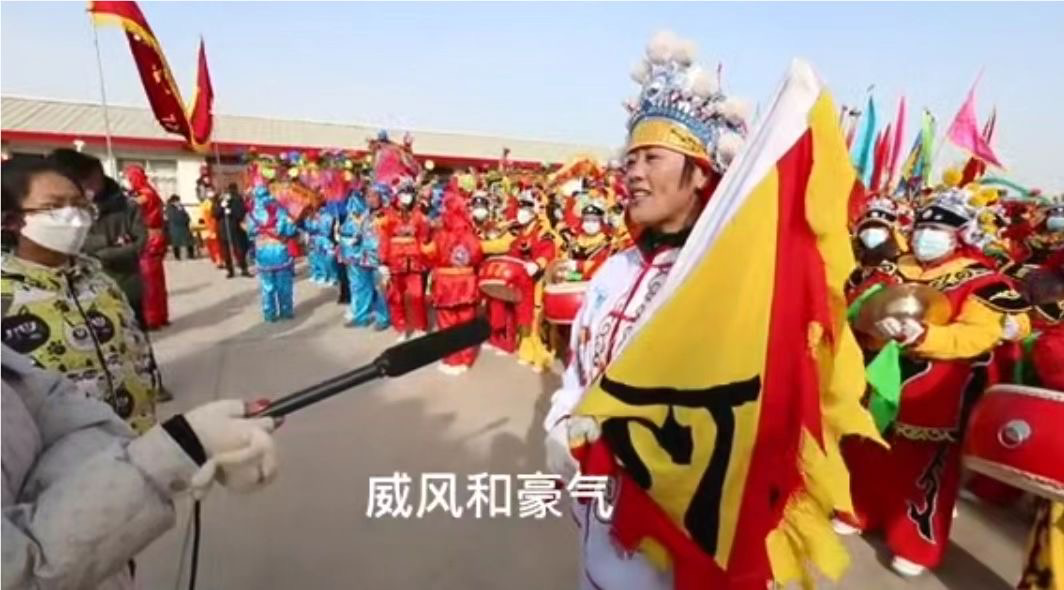 安定区内官营镇万崖村龙虎山社火队的付艳琴说:“父老乡亲非常热爱社火,所以村里能够组织起400人的社火队。作为威风锣鼓队的队长,我要带领乡亲们打出威风和豪气。”