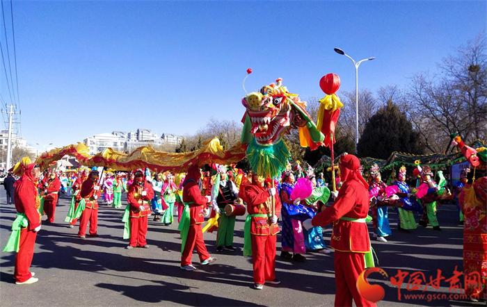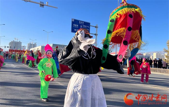 锣鼓喧天耍社火,红红火火迎新春。1月29日,农历正月初八,武威市凉州区“社火迎春展新篇·鼓舞凉州创辉煌”城乡社火展演活动在城区精彩上演,铿锵的锣鼓、金色的祥龙、欢快的秧歌等特色表演向全区各族群众送去新春的问候和祝福,欢乐喜庆的社火活动让观众大饱眼福,体验了一把年味十足的民俗文化盛宴。