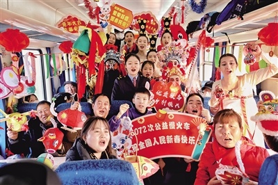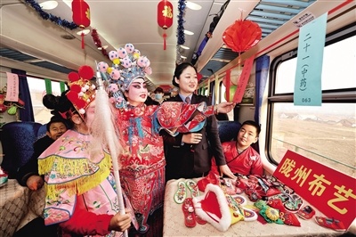 由西安客运段担当的宝鸡至平凉6072/3次公益慢火车是一趟“文化慢火车”。自2018年以来,先后多次联合地方文旅部门举办各类列车文化活动,宣传沿途地方区县非遗、民俗文化和特色旅游,助力脱贫攻坚,服务乡村振兴,不仅带动了地方经济发展,也满足了旅客旅途精神文化需求,让旅客积极参与和体验地方节日习俗,感受传统文化的魅力。