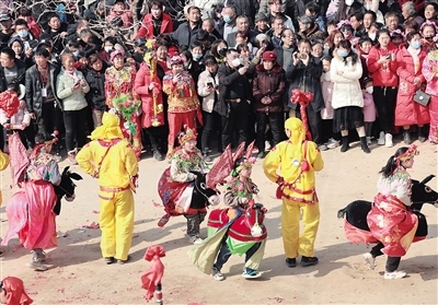 ▲2月4日,大荔县官池镇苏胡村上演传统民俗“跑竹马”。 李世居 代泽均 摄