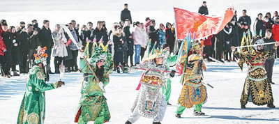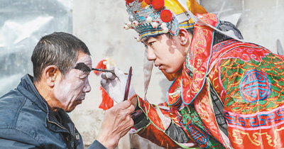 13日一大早,辽宁省本溪市本溪满族自治县小市镇同江峪村的许多村民已经忙活上了。平日,他们是普通的农民;上好妆容、穿上戏服,他们化身戏中英雄,传承着本溪社火。