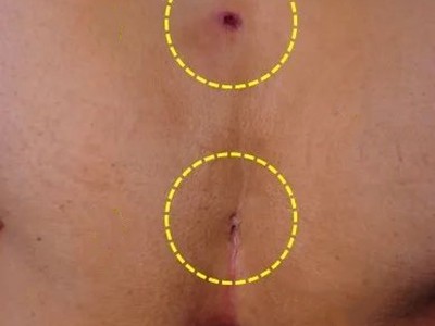 藏毛窦患者发生于骶尾部时,会出现了两个小孔,形状规则呈椭圆形,边缘光滑,其中一个小孔内部有游离的毛发突出,常出现反复的肿痛和流脓。