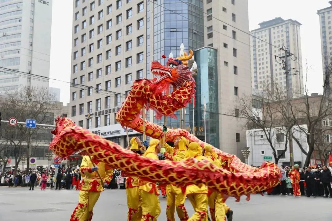 他们扭秧歌、舞长龙、耍狮子、划旱船、踩高跷,合着锣鼓的节奏,扭着摇曳的舞步尽情地表演着。