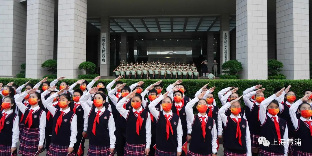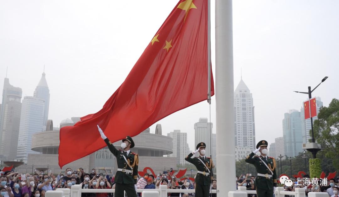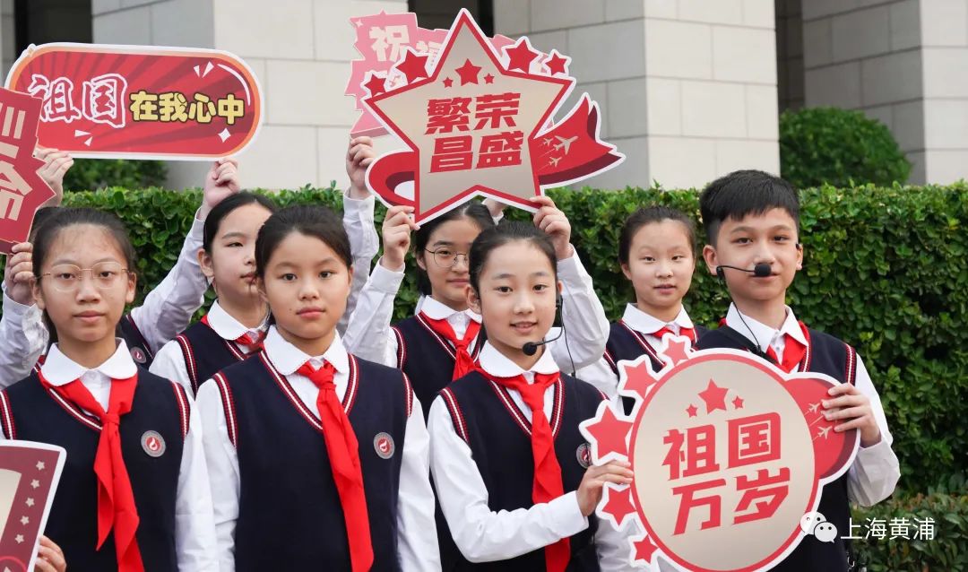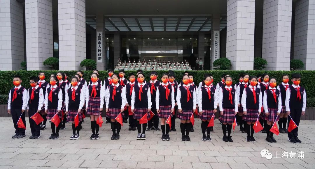 仪式结束后,参加升旗仪式的上海市格致初级中学初一(3)国旗中队全体队员用一首《歌唱祖国》为伟大的祖国母亲庆生。