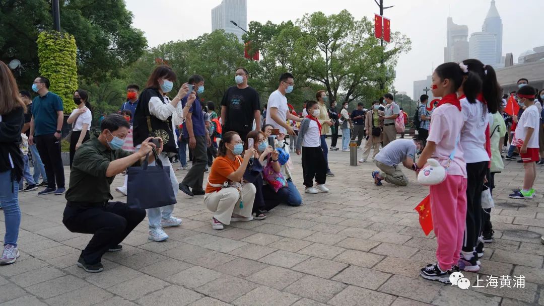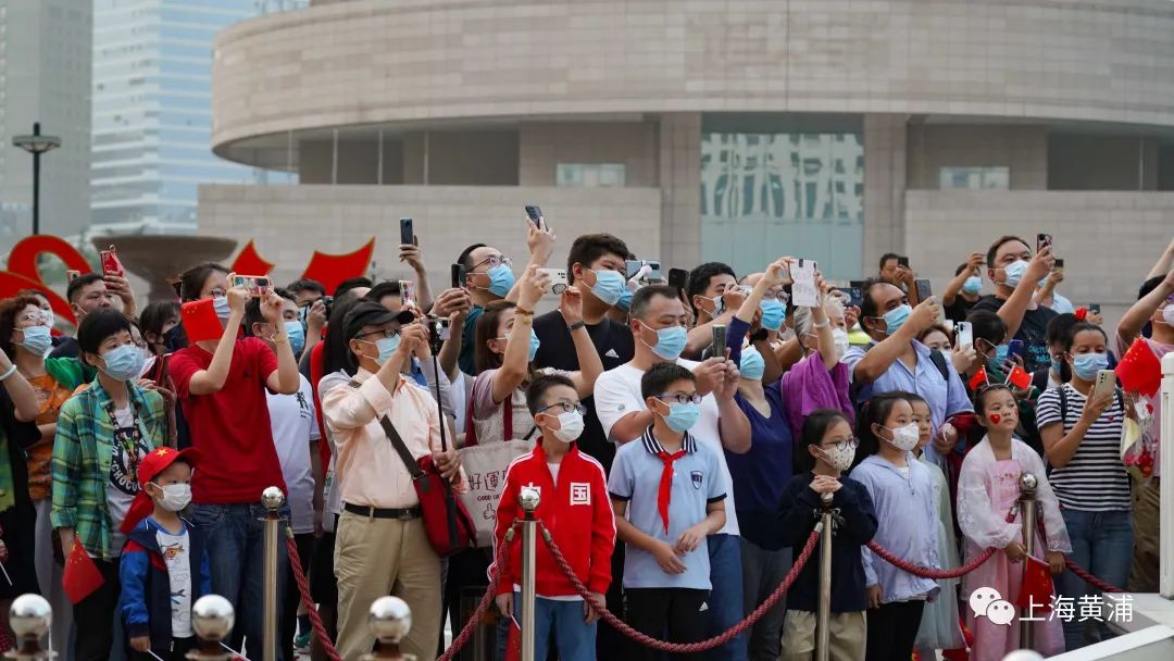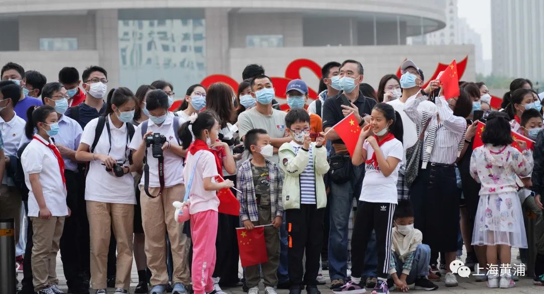 不少市民是举家前来观看仪式,纷纷和国旗合影留念。