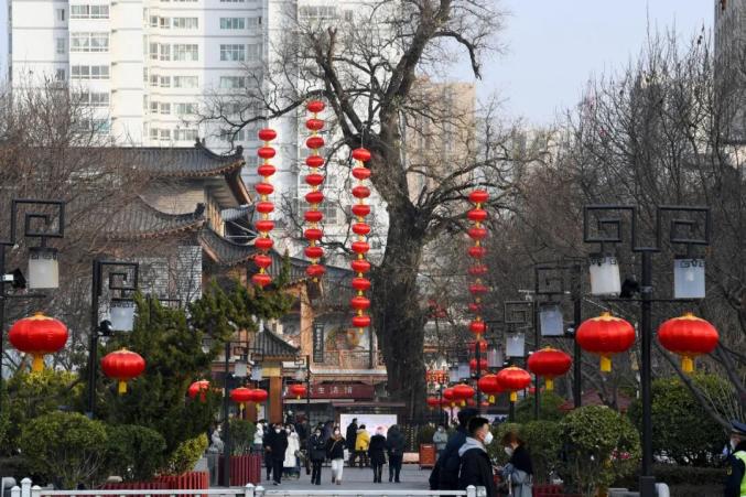 1月4日,记者看到天水的大街上挂满了大红灯笼,让市民提前感受到新年的气息。春节临近,天水城区主干道、广场、景区等地悬挂起红灯笼和装饰花,营造欢乐、祥和、喜庆的节日氛围。(新天水记者 李旺旺)