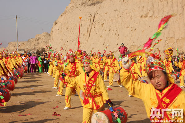 兰州市榆中县骆驼乡也以太平鼓贺新年
