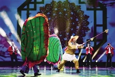 在内蒙古新年舞蹈晚会上表演“双墙秧歌”《海蚌戏渔翁》。
