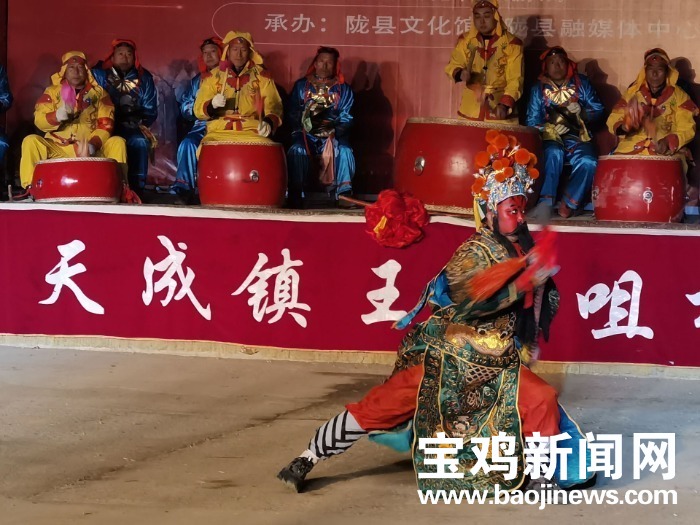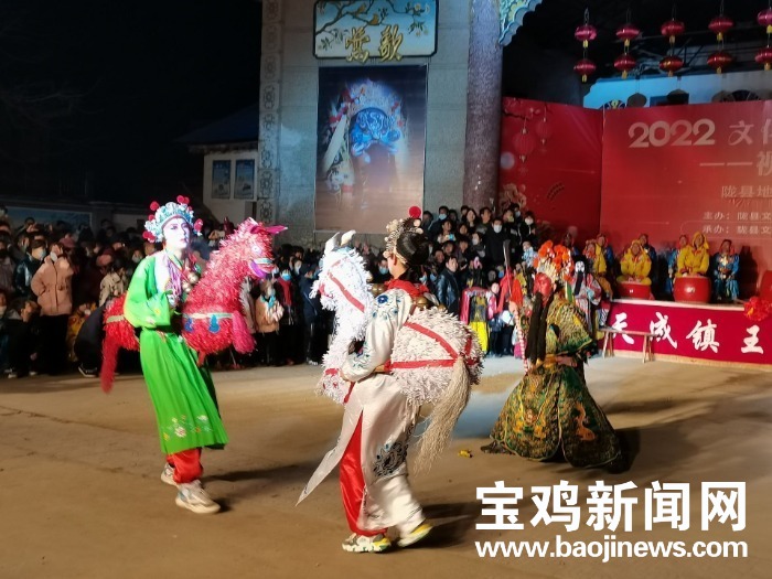 宝鸡新闻网讯 2月9日晚,农历正月初九,民间社火之乡的陇县网络直播了天成镇王马咀村地台社火,《关公刀》《三英战吕布》《黑虎搬三宵》等经典社火剧目接连上演,让全国各地网友足不出户大饱眼福。据不完全统计,当晚共有600多万网友目睹了陇州社火的独特魅力,感受到浓浓的年俗。