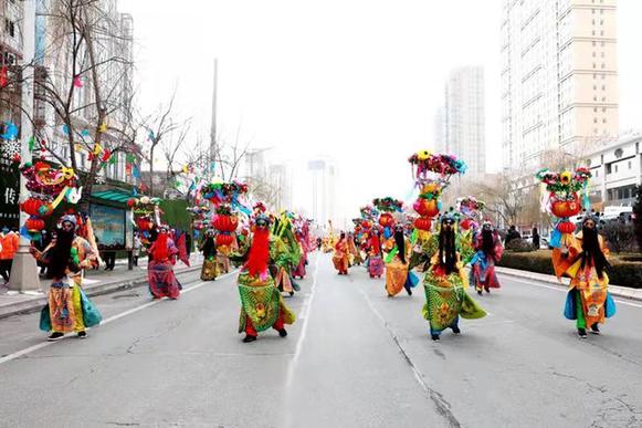 2月14日(农历正月十四),“我们的中国梦——文化进万家”2022年临夏州迎新春接社火活动在临夏市举行。