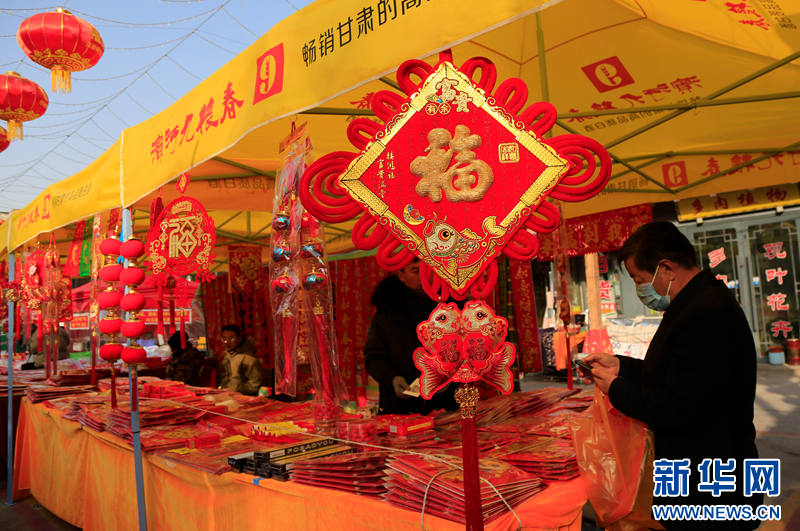 市民在甘肃省张掖市甘州区万家便民市场购买年货。新华网发(成林 摄)