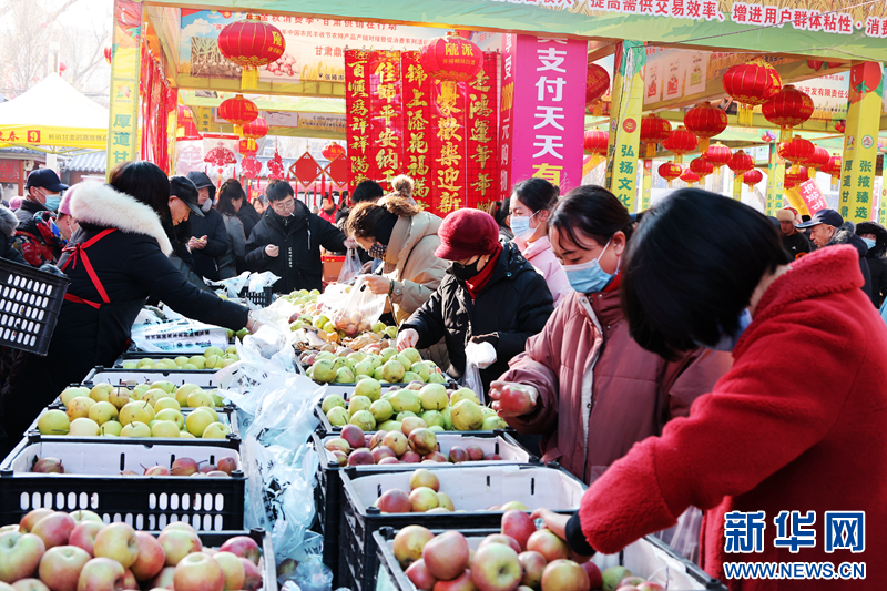 市民在甘肃省张掖市甘州区万家便民市场购买年货。新华网发(陈礼 摄)