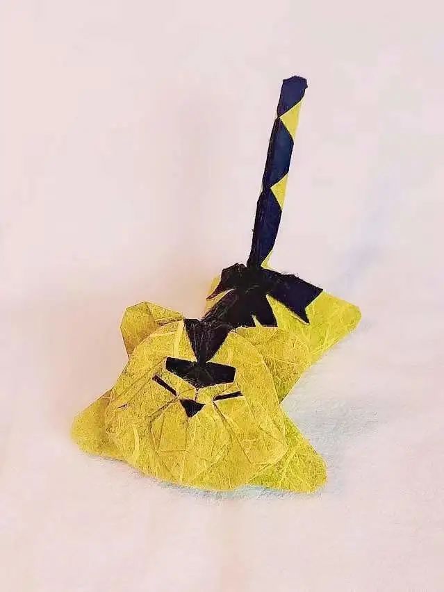仅用一张拼接的金黑相间的凸多边形纸,就能折出了一只栩栩如生的老虎。与传统折纸法相比,采用现代折纸法折成的趴趴虎更为立体、生动,将这呆萌的趴趴虎摆放在家中,就是整个虎年最抢眼的“明星”手作。