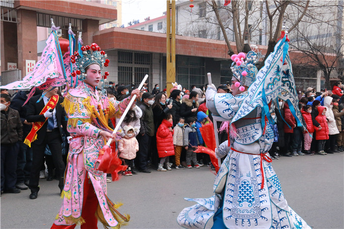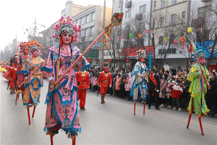 县城内人头攒动,雄壮威武的马社火、粗犷剽悍的背社火(挈社火)、神秘夸张的“血社火”、玄妙精彩的高芯社火、传神的社火脸谱、意趣横生的跷板、形式多样的大头娃娃、跑旱船社火表演等让人目不暇接,每一架社火都活灵活现、精彩夺目,展示了非物质文化遗产,弘扬了传统文化艺术。整个表演精彩纷呈,高潮迭起,让大家美美地享受了一次视觉盛宴。