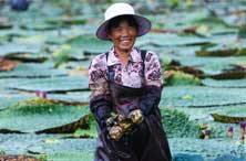 8月19日,河南省信阳市光山县北向店乡何寨村稻禾田合作社芡实种植基地,社员正在收获芡实。新华网发(谢万柏 摄) 8月19日,河南省信阳市光山县北向店乡何寨村稻禾田合作社芡实种植基地,社员正在收获芡实。
