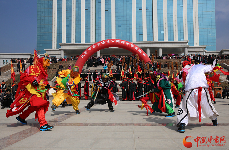 当日,永靖县9支乡村社火队上千名演员进城表演,为民众送上了新春的祝福。其中,被列为国家非物质文化遗产的杨塔乡傩舞展示了永靖县“中国傩文化之乡”的风采。通讯员 侯奇志 郭红 陈万吉 摄