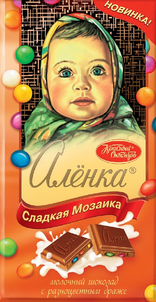 图说:1965年问世的苏联传奇巧克力“大头娃娃”(英文名Alyonka)