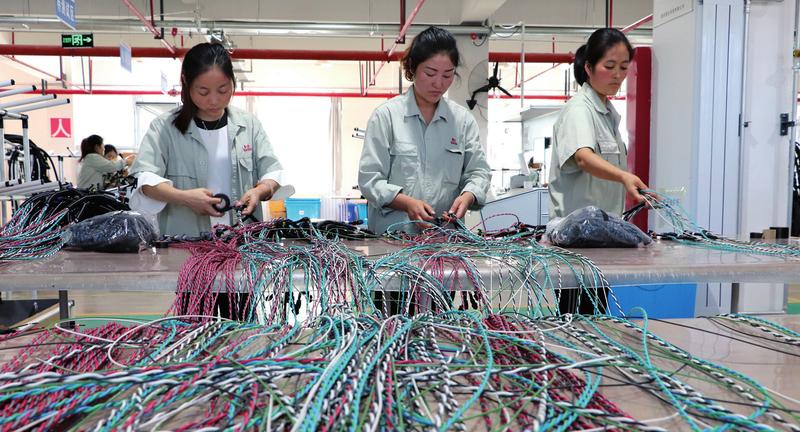 县上采取“1+13”模式进行帮扶,“1”就是陇县苏陕工业园,“13”则是分布在全县8个镇的13家社区工厂,让周边镇村群众在家门口就业,实现挣钱、顾家两不误。9月7日,记者在位于陇县苏陕工业园区的江苏恩达车用线束项目车间看到,操作员工全部是陇县人。他们月平均工资达4300元,享受交通和伙食补助,企业还给他们办理了“五险一金”。