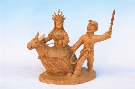 甘肃省工艺美术大师常天平以惟妙惟肖的泥塑作品,再现了河州秧歌及日常生活场景,散发着浓浓的乡土气息。