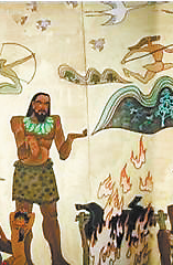 再如脍炙人口的女娲补天的故事也是创世传说,《淮南子·览冥训》云:“往古之时,四极废,九州裂。天不兼覆,地不周载。火爁焱而不灭,水浩洋而不息。猛兽食颛民,鸷鸟攫老弱。于是女娲炼五色石,以补苍天,断鳌足以立四极,杀黑龙以济冀州,积芦灰以止淫水。苍天补,四极正,淫水涸,冀州平,狡虫死,颛民生。”