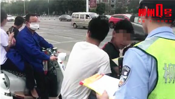 一批骑电动车没戴头盔的市民被交警拦下进行教育