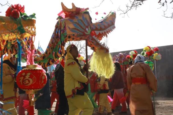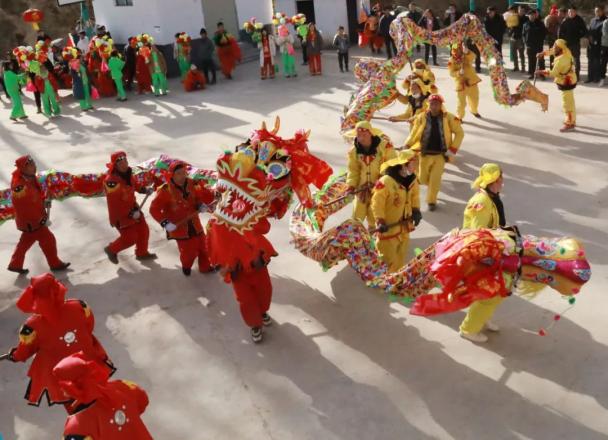 威武的雄狮前后跳跃,虎虎生威的锣鼓声,欢腾的舞龙表演,滑动的旱船、古老的跑马、诙谐的摇媳妇等贴近农村生活的语言,表演者通过摆弄各种让人忍俊不禁的滑稽动作,惹得围观群众欢笑一片,给群众带来了一场丰富的文化盛宴。
